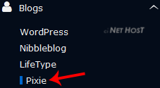 4. On the left side of your screen you should locate the "Blogs" category. Click on it and then click on the "Pixie" link that will appear.