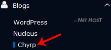 4.  On the left side of your screen you should locate the "Blogs" category. Click on it and then click on the "Chyrp" link that will appear.