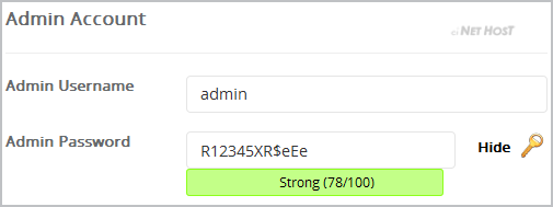 - Admin Username: Your new HTMLy username (for security reason do not use the "Administrator" or the "Admin" username.)