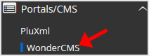 4. On the left side of your screen you should locate the "Portal/CMS" category. Click on it and then click on the "WonderCMS" link that will appear.